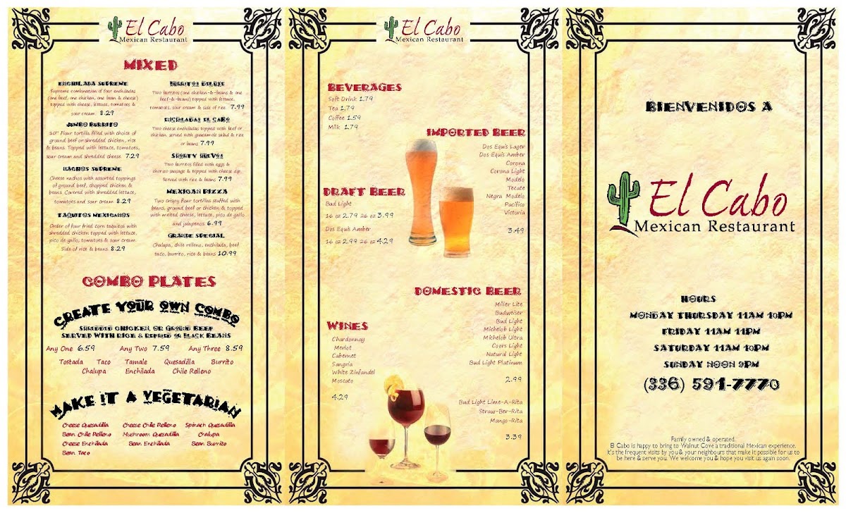 El Cabo Mexican Restaurant Menu